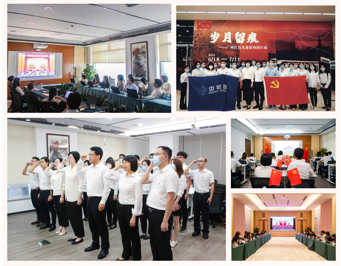 这一年,中职信党支部成立以项目组为单位的党小组,在项目一线开展党史学习教育;组织全体党员走进广州图书馆《广州红色史迹故事图片展》;动员全体中职信人参加广东省注册会计师行业党委“颂党恩 报国情”征文及短视频活动,制作的“百年风华—奋斗百年路 启航新征程”获短视频比赛一等奖;组织全体中职信人收看庆祝中国共产党成立100周年大会;组织全体合伙人于年度合伙人会议集体学习《中国共产党第十九届中央委员会第六次全体会议公报》。