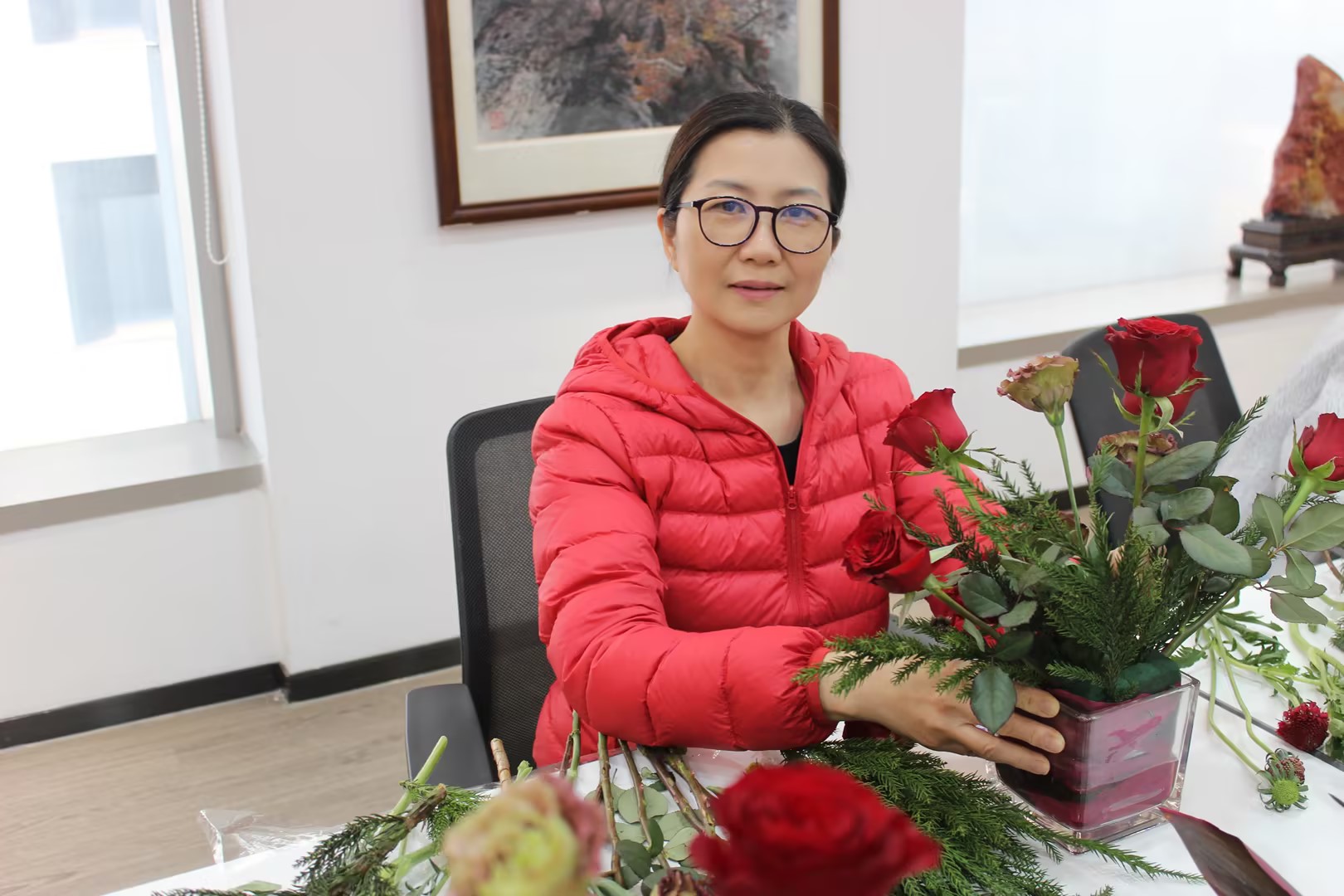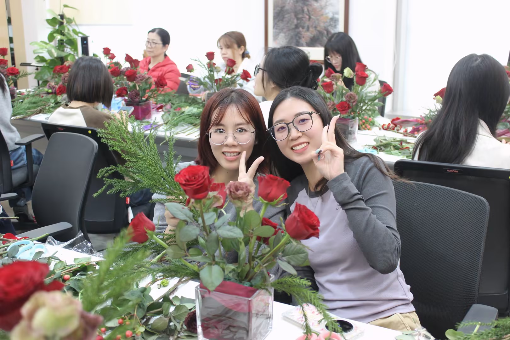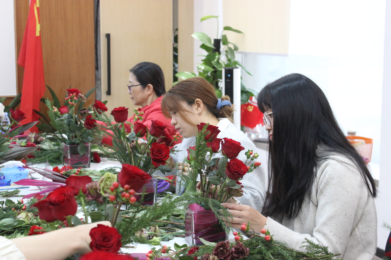 同时总所特邀著名花艺师亲临现场,带领女同胞们沉浸式体验插花艺术,在修剪、搭配、造型的过程中,大家释放身心压力,感受自然之美与创作之乐,一束束错落有致的花艺作品,绽放着独属于女性的优雅与灵动。