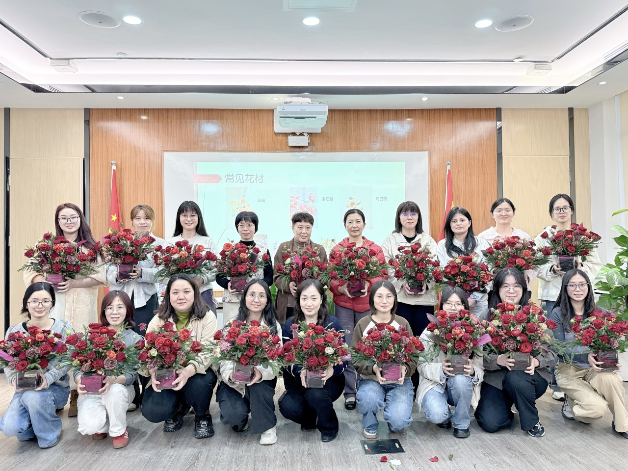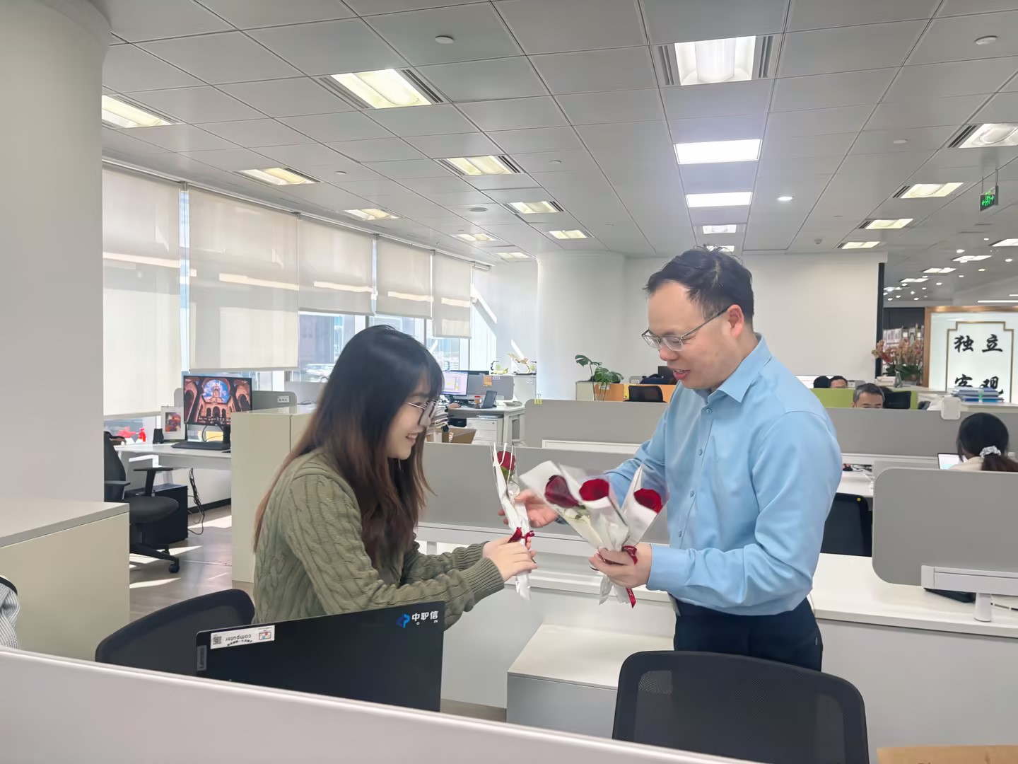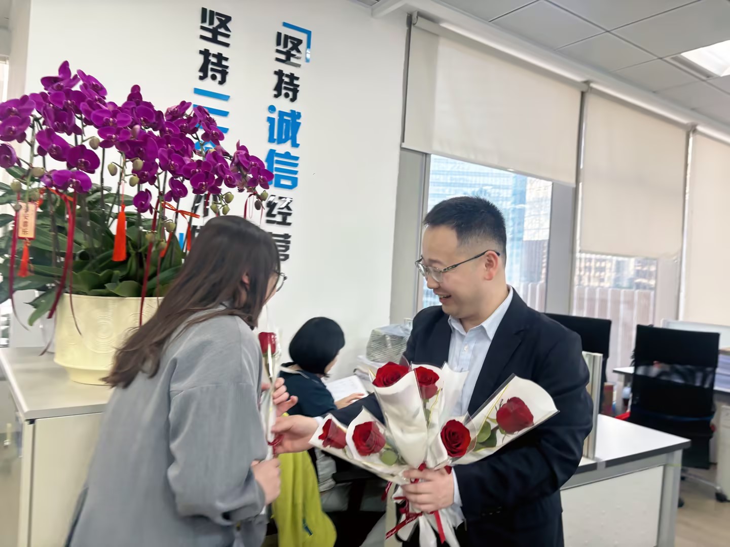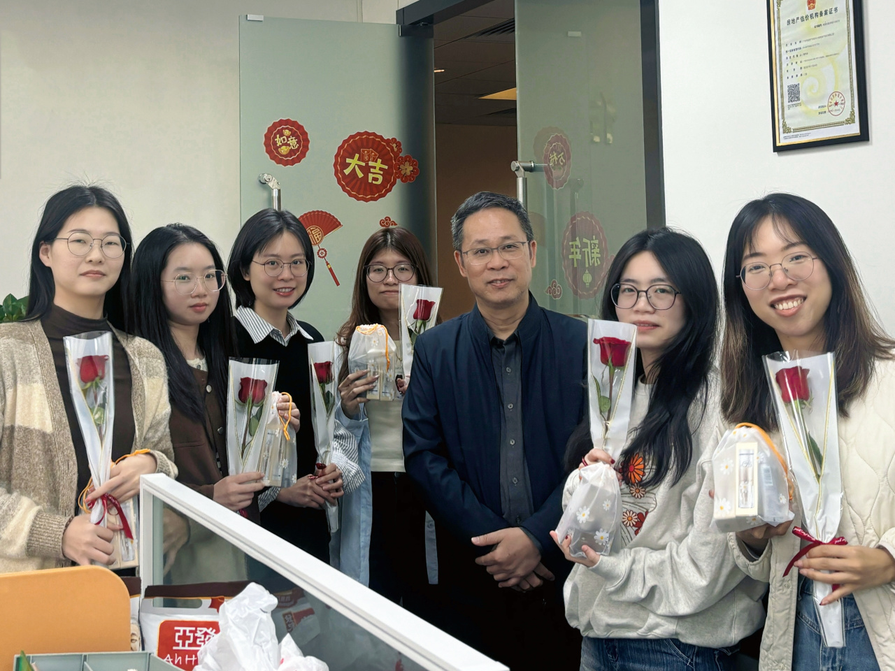 活动现场暖意融融,更有四位合伙人李山、邓集龙、赵准、林枝峰亲自为每位女同胞们送上娇艳的玫瑰花,每一朵鲜花都承载着对女同胞们的认可与敬意。她们既是职场上独当一面的业务骨干,也是生活里闪闪发光的主角,用专业与担当撑起中职信发展的 “半边天”。