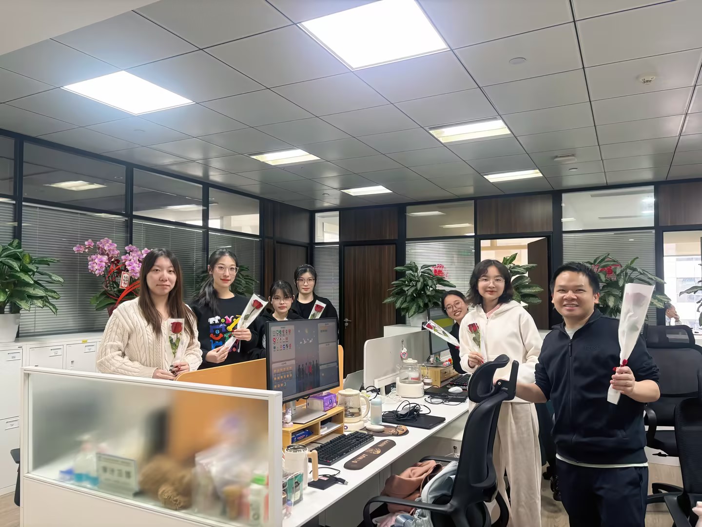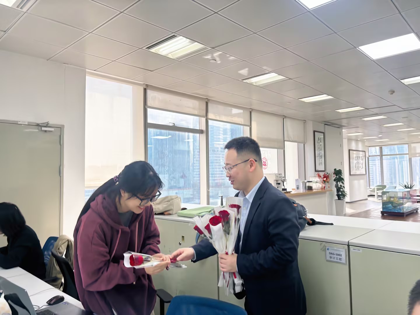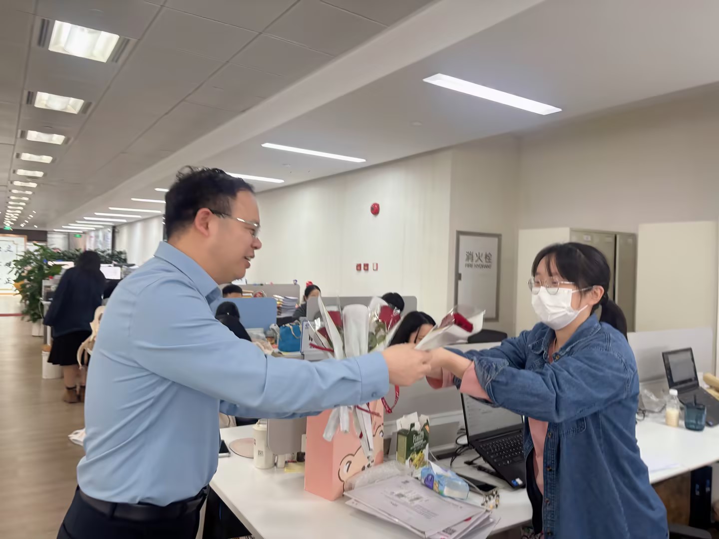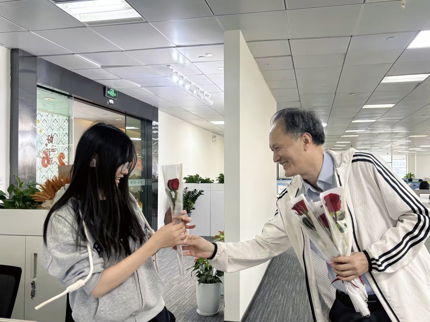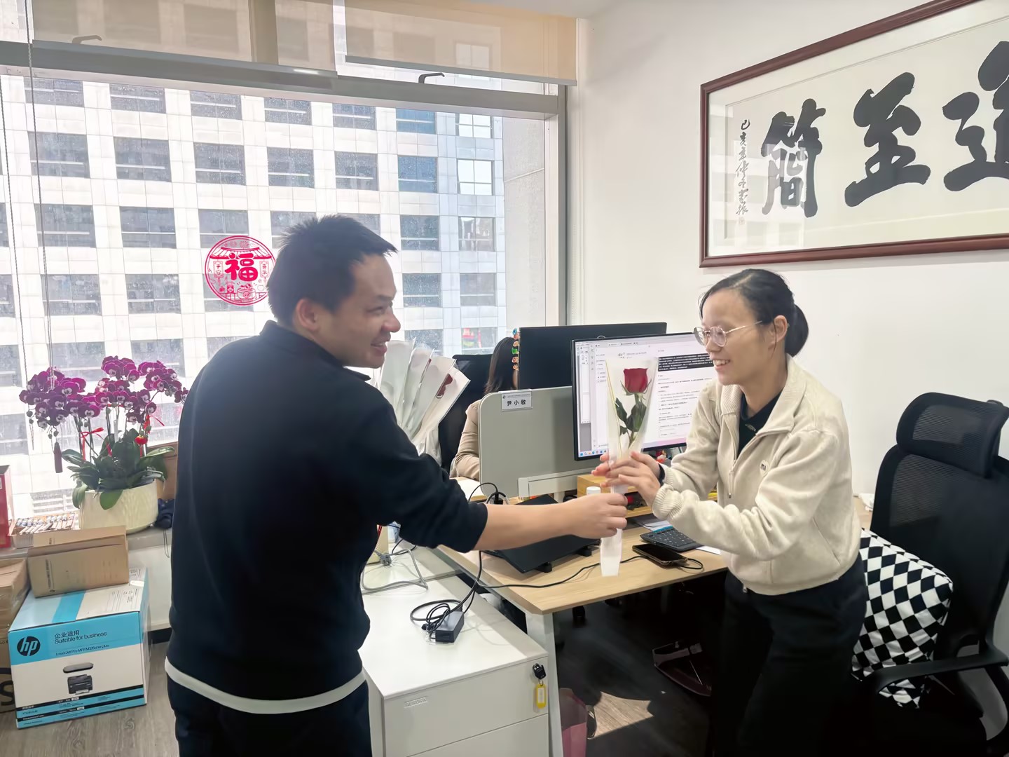 活动现场暖意融融,更有四位合伙人李山、邓集龙、赵准、林枝峰亲自为每位女同胞们送上娇艳的玫瑰花,每一朵鲜花都承载着对女同胞们的认可与敬意。她们既是职场上独当一面的业务骨干,也是生活里闪闪发光的主角,用专业与担当撑起中职信发展的 “半边天”。